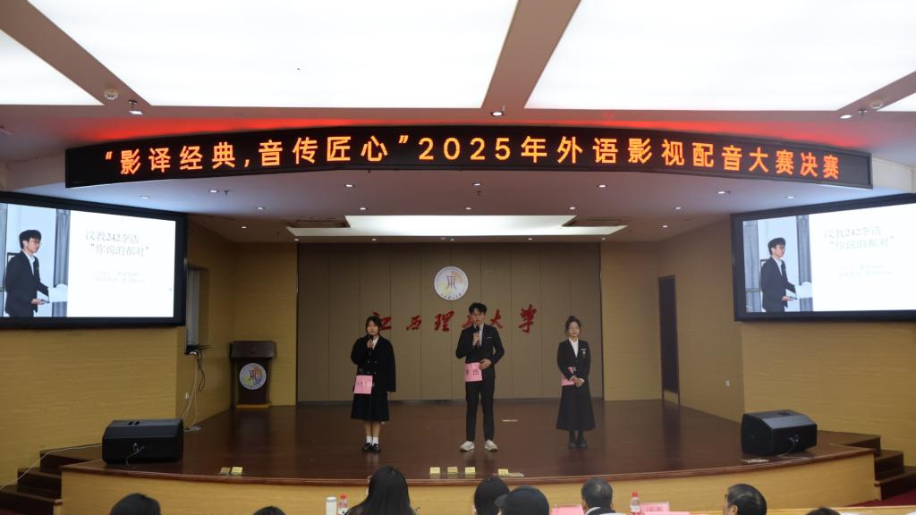 决赛现场高潮迭起,精彩纷呈。选手们凭借扎实的语言功底与灵动的演绎能力,将一部部经典影视片段赋予新的生命力。无论是《小妇人》的细腻温情、《疯狂动物城》的明快灵动,还是法语版《猪爸爸的办公室》、《老友记—乔伊说法语》的特色选题,都被选手们精准诠释,发音与情感的高度契合令人耳目一新。《青春变形记》的少女心事、《马达加斯加》的诙谐搞怪、《长发公主》的浪漫憧憬,在选手们的配音中鲜活呈现;《甄嬛传》的古韵腔调、《熊出没》的童真趣味、《爱乐之城》的浪漫声线、《神偷奶爸》的幽默诙谐轮番上演,引得现场掌声阵阵。更有队伍一人分饰多角,在《mean girl吵架》《芭比之梦想豪宅》的角色间自如切换;亦有选手以《冰雪奇缘》的经典台词沉浸式独白,瞬间将观众带入剧情。多元的选题搭配鲜活的配音技巧,碰撞出别具一格的视听火花。