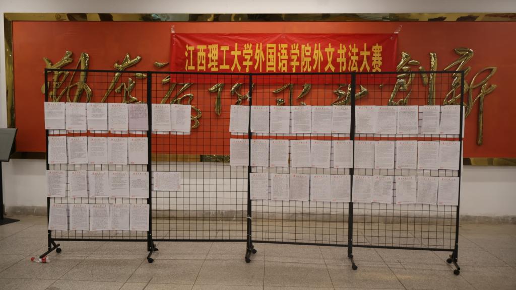 本次比赛入围作品在图书馆报告厅入口处集中展出,现场以贴纸投票的形式决出最终奖项。经过现场观众的最终投票,英语赛道的肖雯、徐利利、汪清华凭借精湛的书写作品斩获一等奖,史婧萍等6人获二等奖,刘怡佳等15人获三等奖,刘雨等8人获优胜奖;小语种赛道里,宁仪源、李浩摘得一等奖,黄佳仪等4人获二等奖,郭蕾等11人获三等奖,徐佳文等6人获优胜奖。